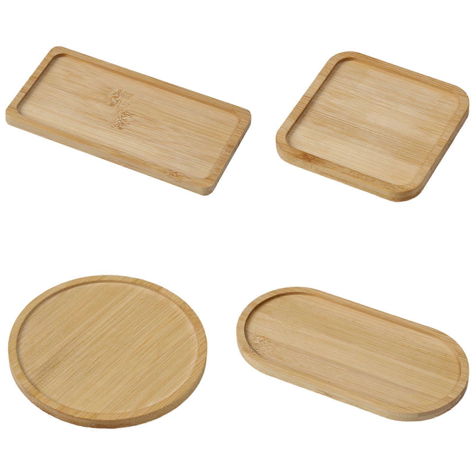 4PCS Multipurpose Bamboos Serving Plates For Fruits Snacks Breakfast Practical Natural Kitchen Storage Trays Multicolor
