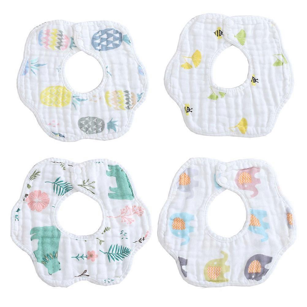 4Set Cotton Baby Bibs For Eating And Drooling Infants Assorted Color Square Rotatable Design