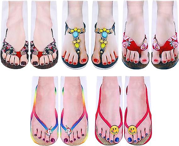 5 Pairs 3d Pattern Socks Women Print Socks Manicure Print Flip Flop Socks Casual Personalized Socks For Halloween Christmas