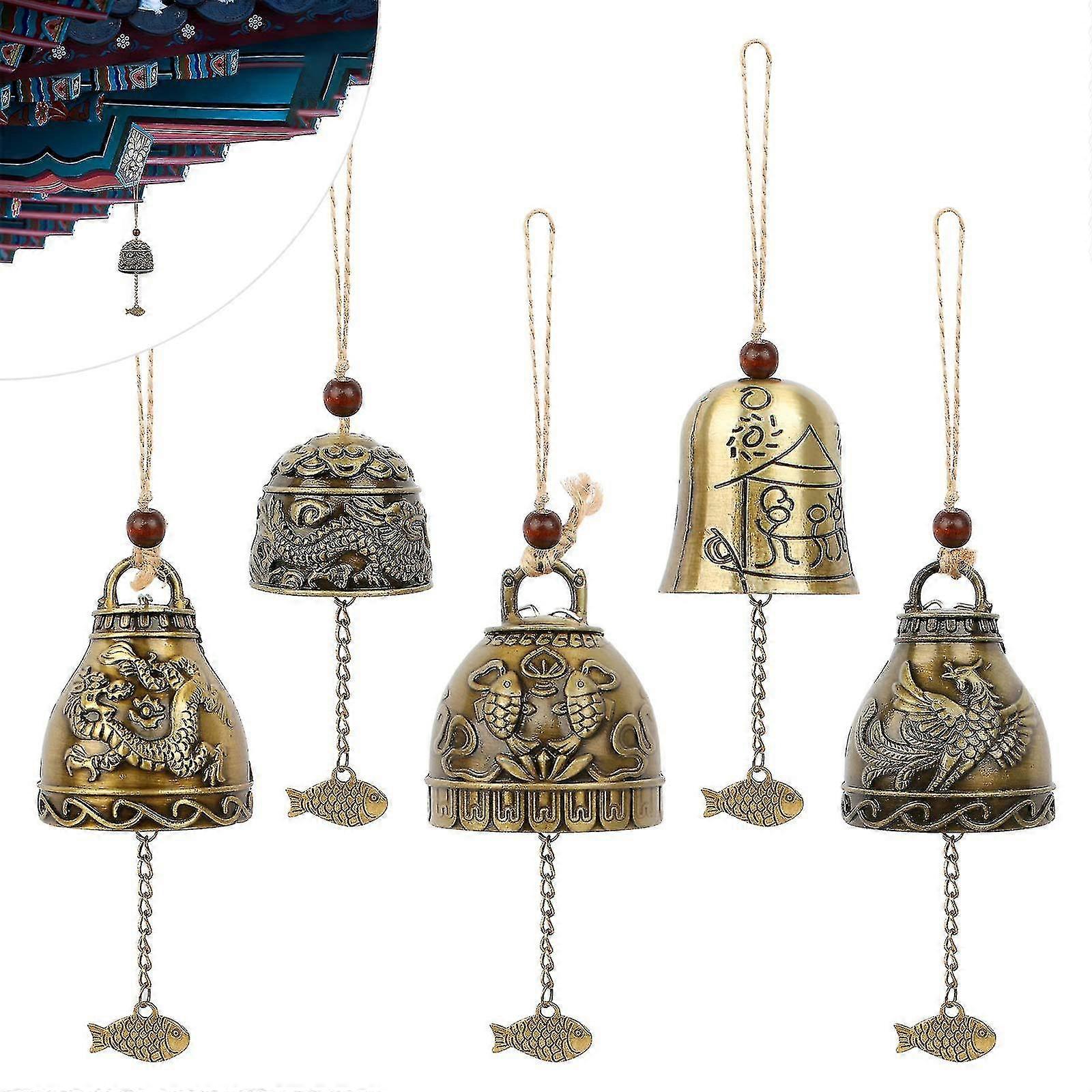5 Pcs Feng Shui Wind Chime Buddha Phoenix Metal Chimes for Home