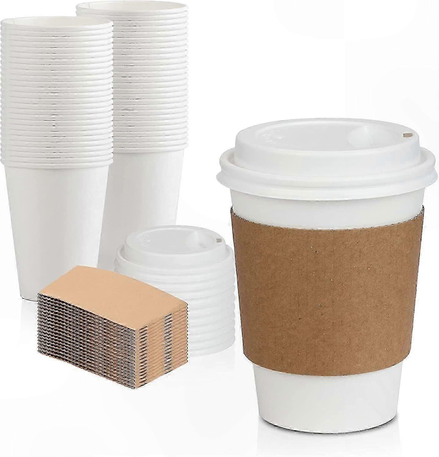 50 Pack 16oz Disposable Paper Coffee Cups with Lids and Sleeves for Hot & Cold Drinks