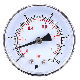 50mm Pressure Gauge 1/8 BSPT Back Connection for Air Water Oil Gas, Dial Meter 0-15 PSI 0-1 Bar Durable Accurate Measurement