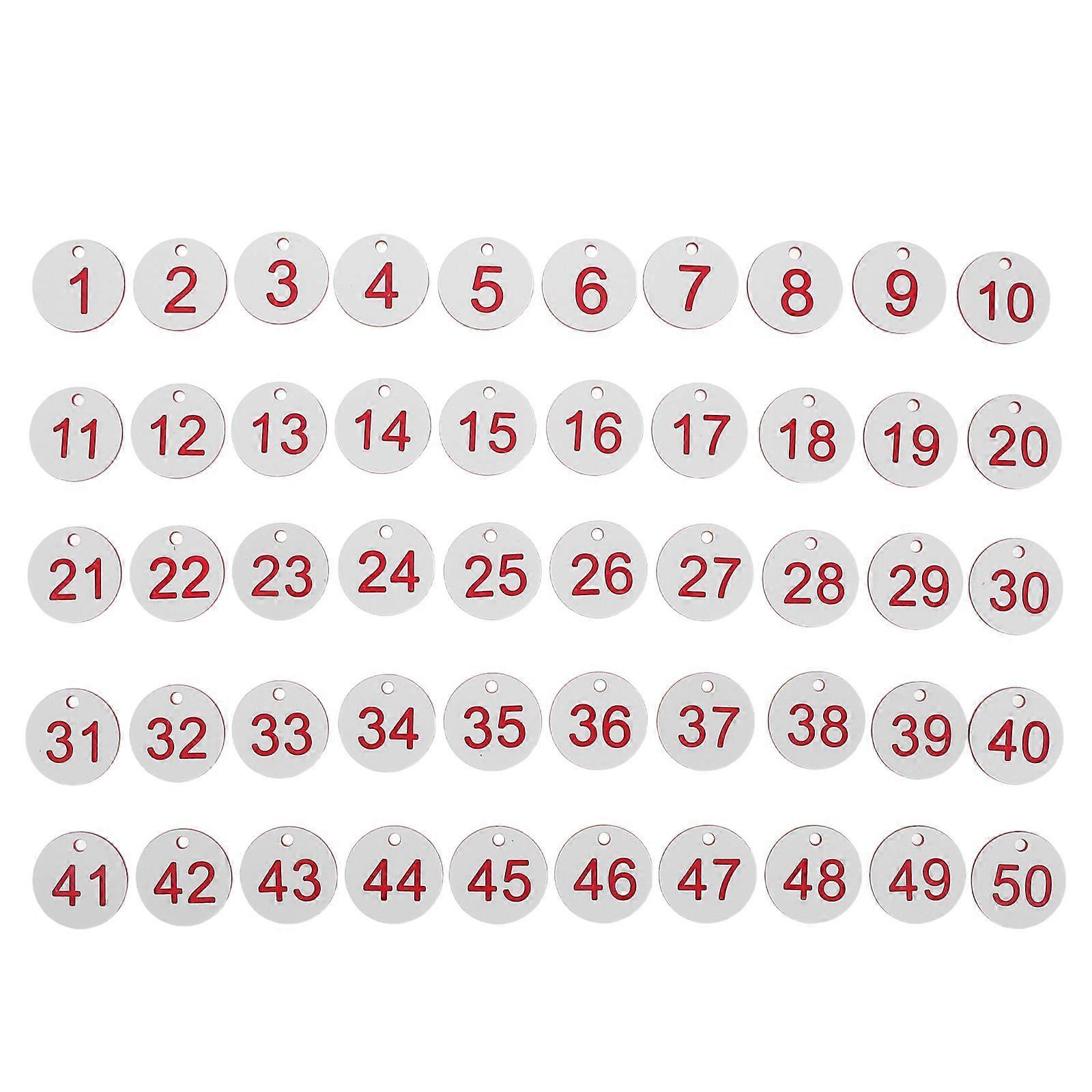 50pcs Plastic Numbered Tags: Restaurant Table Number Markers - Identification Tag Numbers 1-50 - Round Hole Hanger Labels For Spa Cafe Coat Room