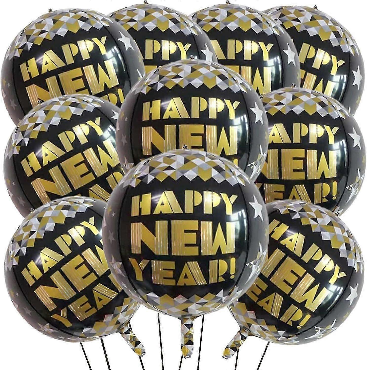 55.88cm Happy New Year Mylar Balloons, 10 Large Size 4D Giant Round Foil Balloons Metallic Balloons, Suitable for Happy New Year Decoration 2024