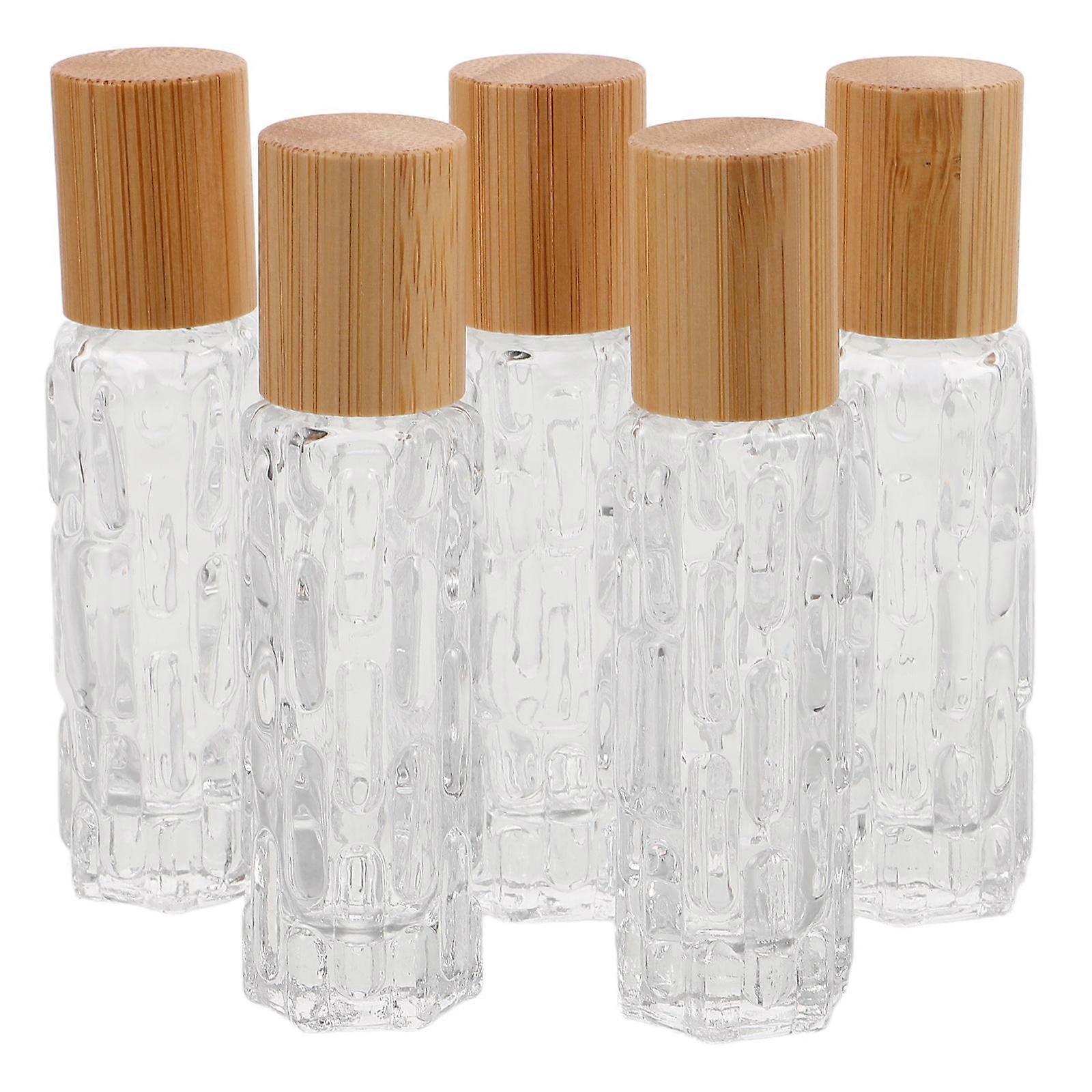 5pcs Glass Roller Bottles with Bamboo Caps for Essential Oils & Eye Creams – Durable, Travel Friendly Containers for Controlled Dispensing