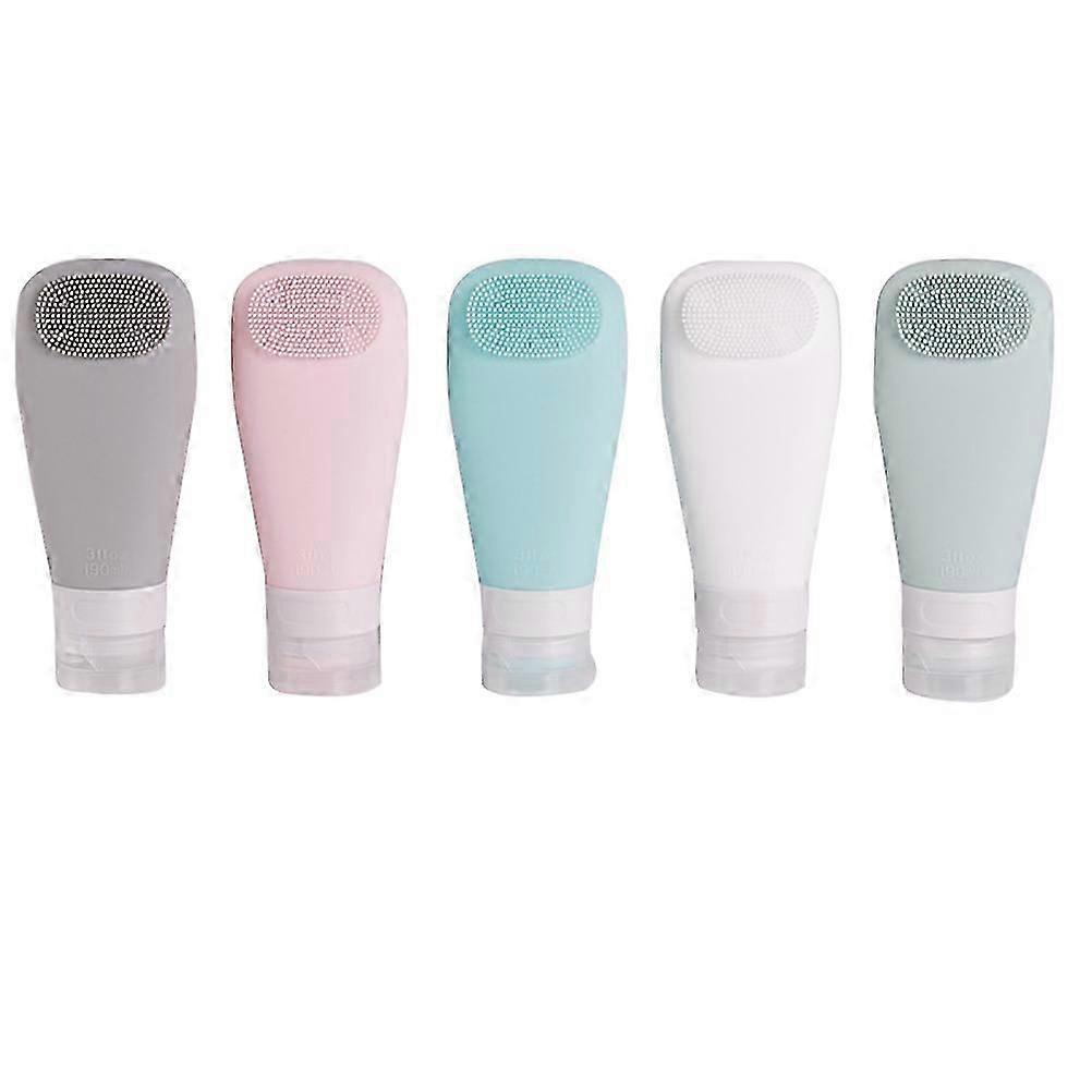 5Pcs Leak Proof Toiletry Containers Refillable Shampoo Bottles with Brush