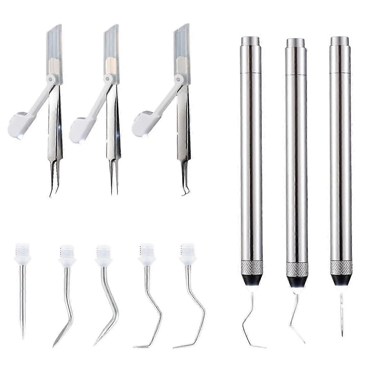 6 Pcs LED Weeding Tools Set for Vinyl, 3 Led Pen with 5 Pin and Hook, with Light Weeding Hook Tweez