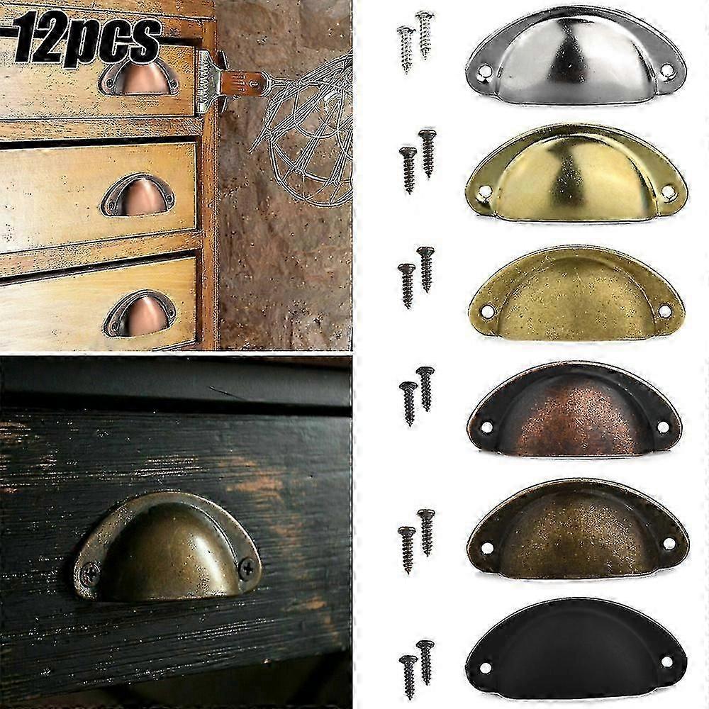 6/12pcs Retro Shell Cup Pull Handles Home Kitchen Door Cupboard Cabinet Furniture Drawer Knobs Tw