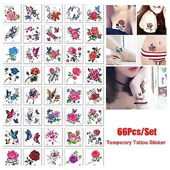 66pcs Flower Butterfly Body Art Temporary Tattoos Stickers Waterproof Tattoos