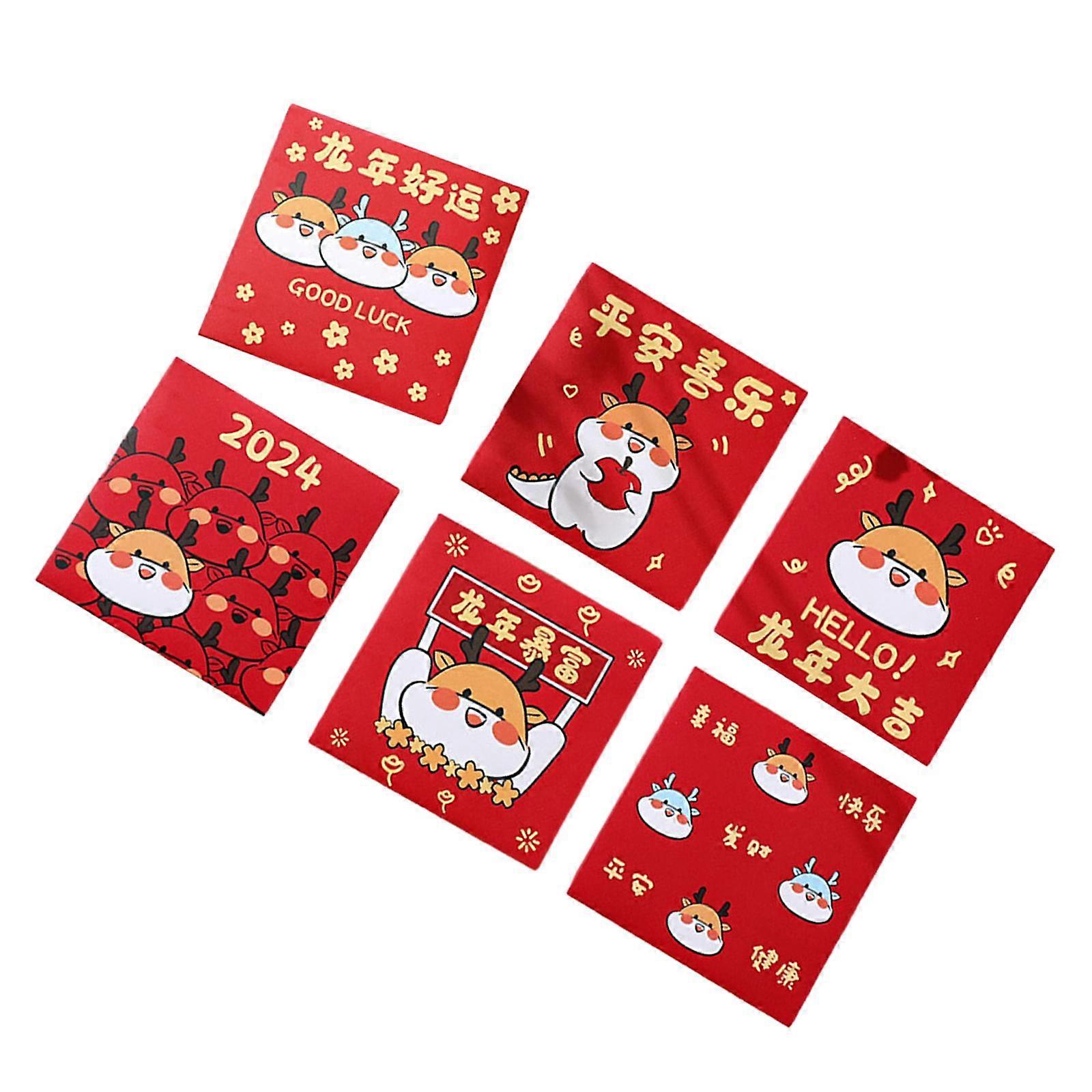 6Pcs Chinese New Year Red Envelopes Red Pockets Hongbao Present Best Wishes
