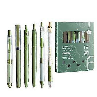 6Pcs Class Writing Pen Set with Retractable Gel Pen Retractable Highlighters Liquid Rolling Ball Pen Smooth to Write malachite green