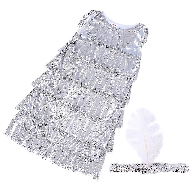 70X40cm Silver Pretend Professions & Role Playing 1pc Girls Tassel Dance Skirt Sleeveless Dance Tass