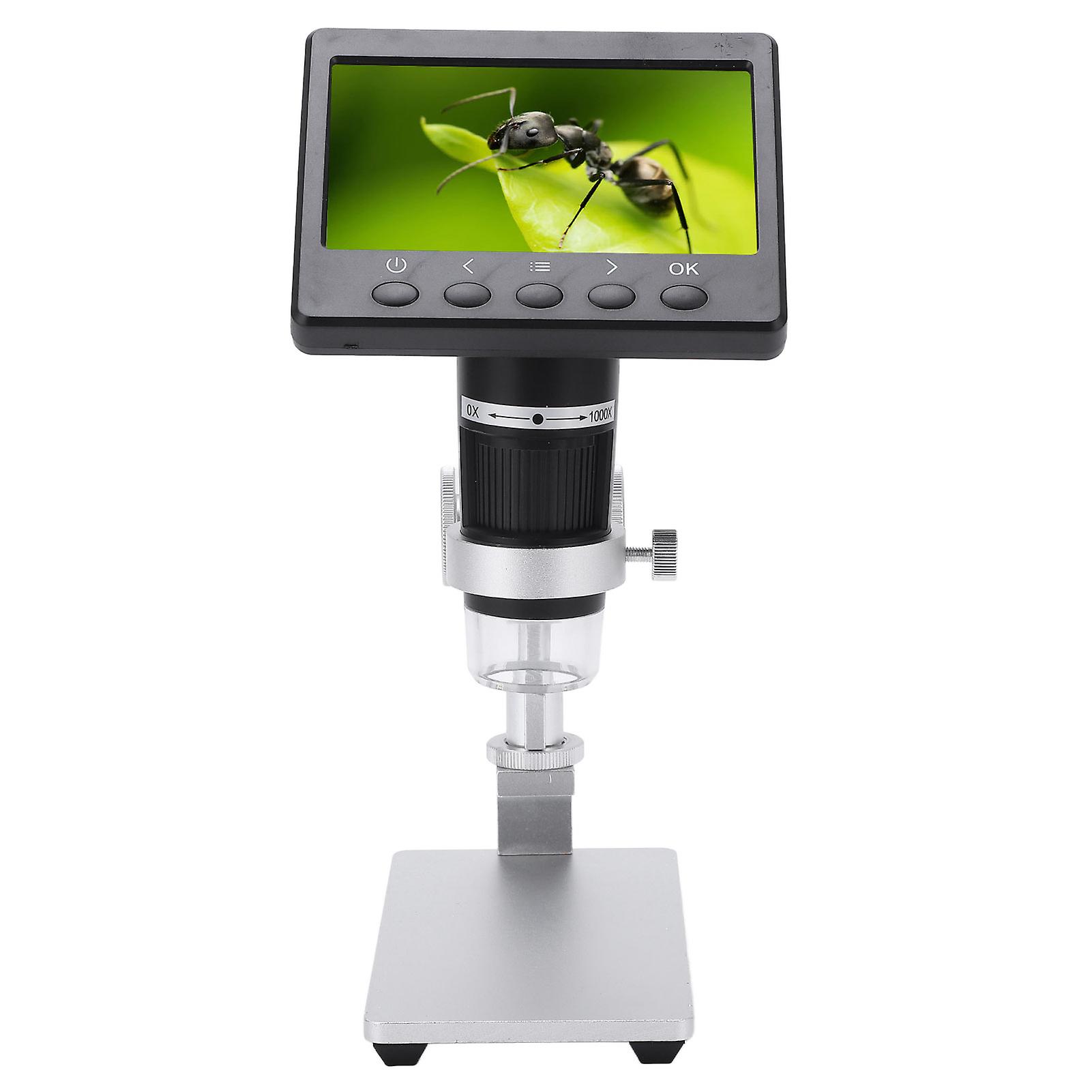 720P Digital Microscope 4.3in LCD Display 1000X Magnification Adjustable Brightness AC100‑240V for Adult Child Education EU Plug