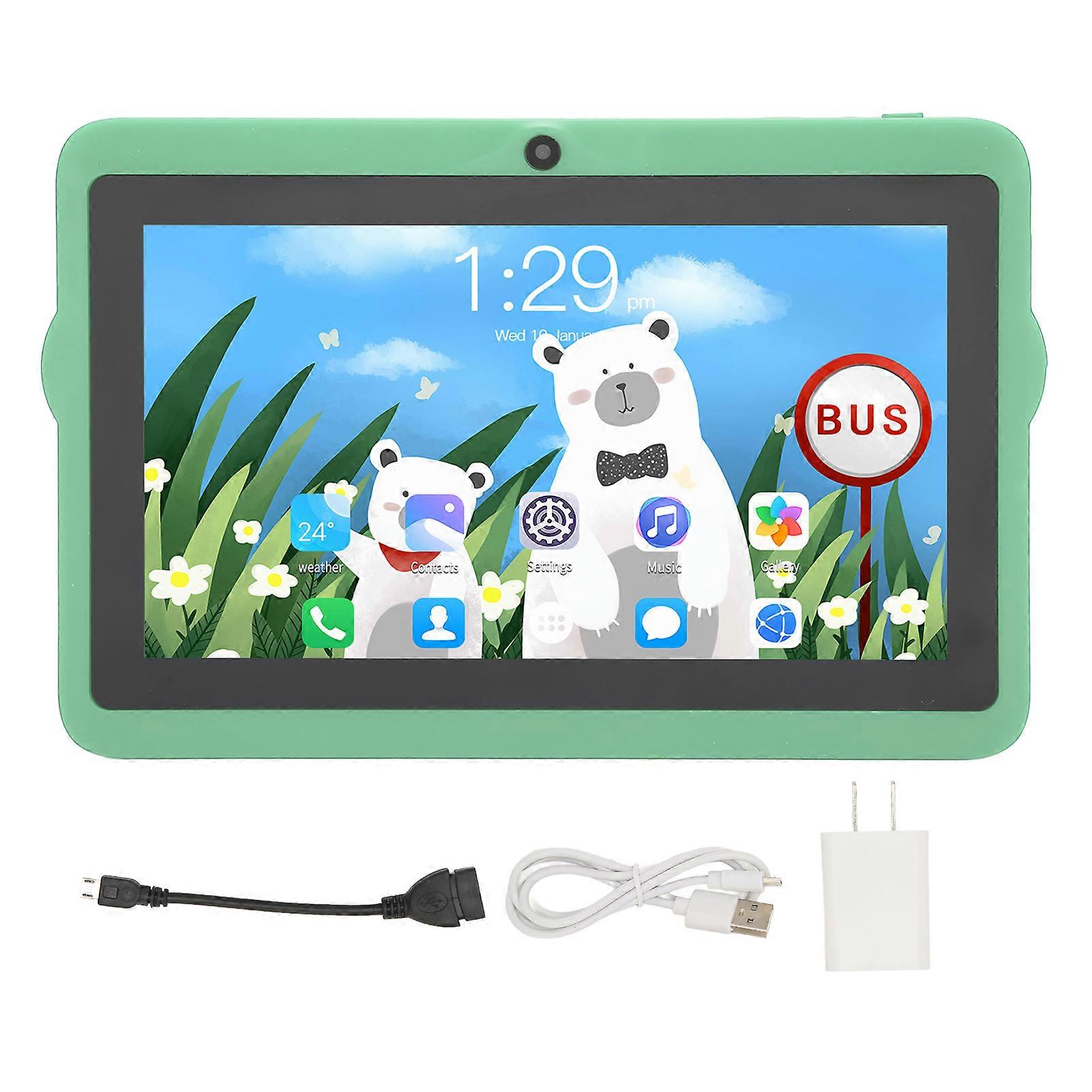 7in Kids Android 10 Tablet 5G WIFI Dual Band 2GB RAM 32GB Storage 8-Core CPU Dual Camera Single Speaker with Stand Green US Plug
