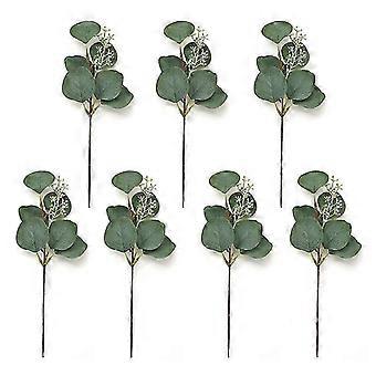 7Pcs Realistic Reusable Faux Eucalyptus Leaves Branch with Stem Green Plants Greenery