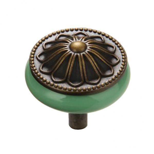 7xVintage Ceramics Round Cabinet Pull Knobs Green