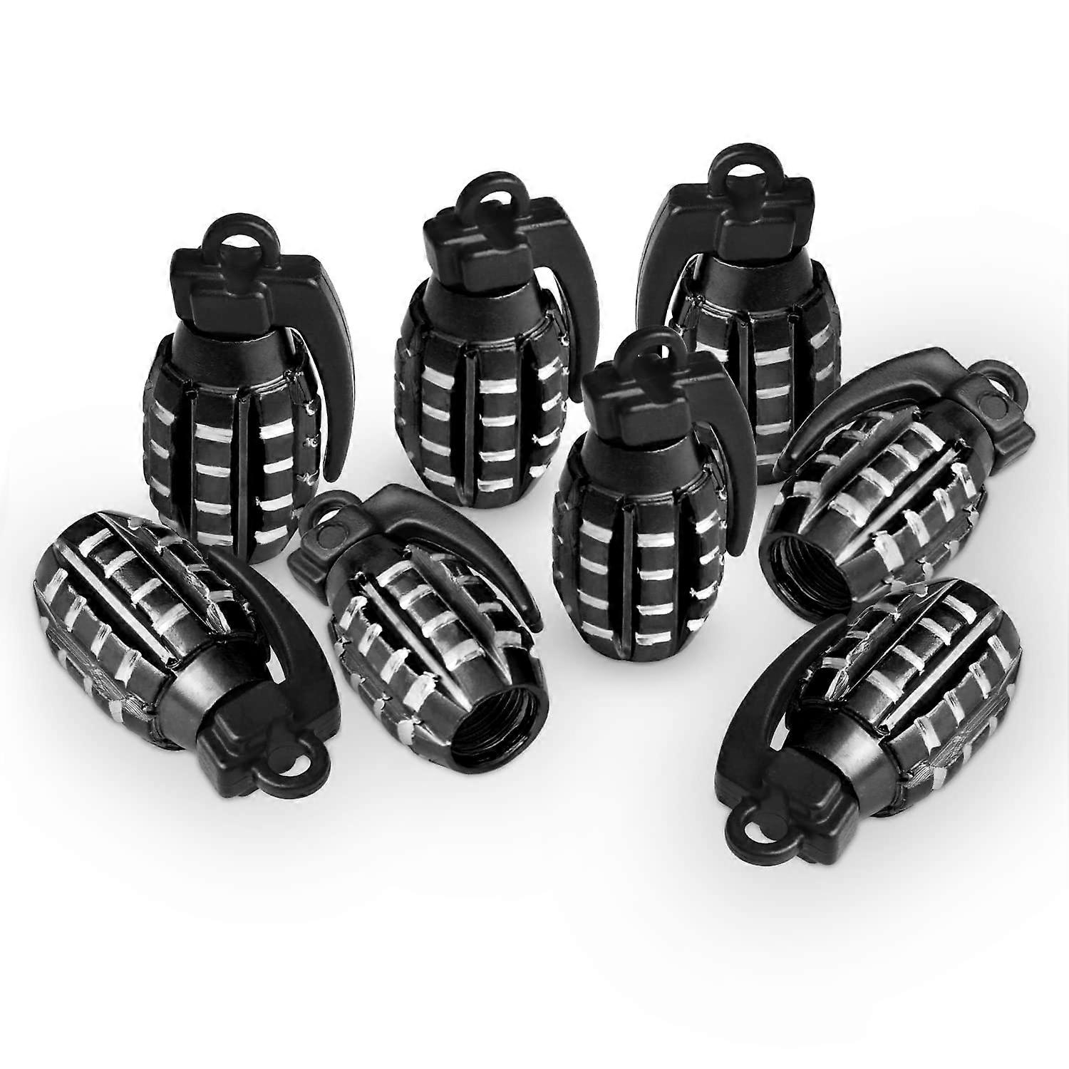 8 PCS Hand Grenade Style Valve Stem Caps, Universal Tire Valve Stem Caps(Black)