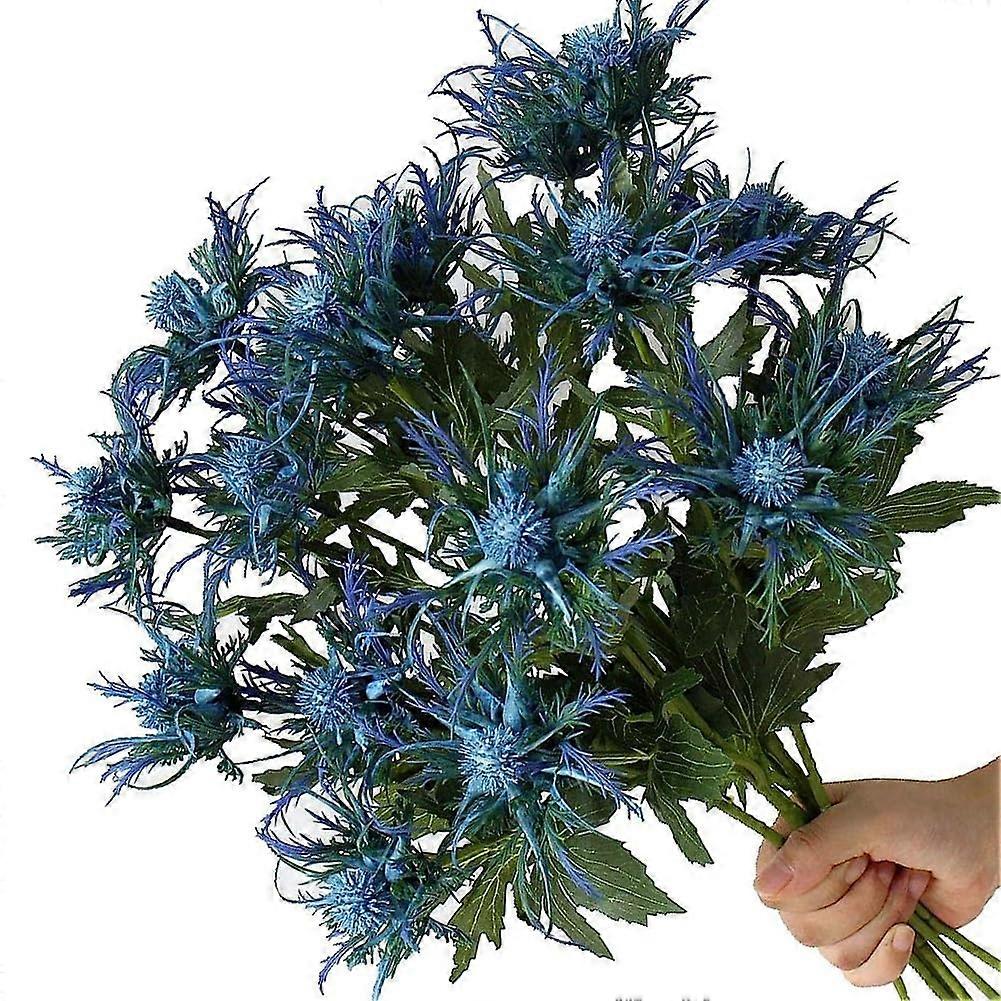 8 Stems Artificial Thistle Flowers Real Touch Blue for Wedding Bouquet Centerpiece 26 Inch