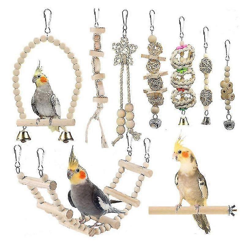 9 Packs Bird Toys Hanging Bell Bird Cage Toys Parrot Swing Chewing Toys