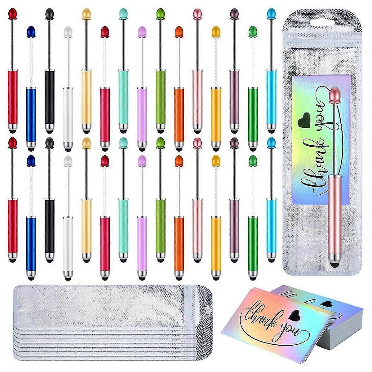 90 Pcs Beadable Pens Kit, Include 30 Pcs 2 In 1 Plastic Stylus Beadable Pens 30 Pcs Foil Thank You Cards With 30 Pcs Bag