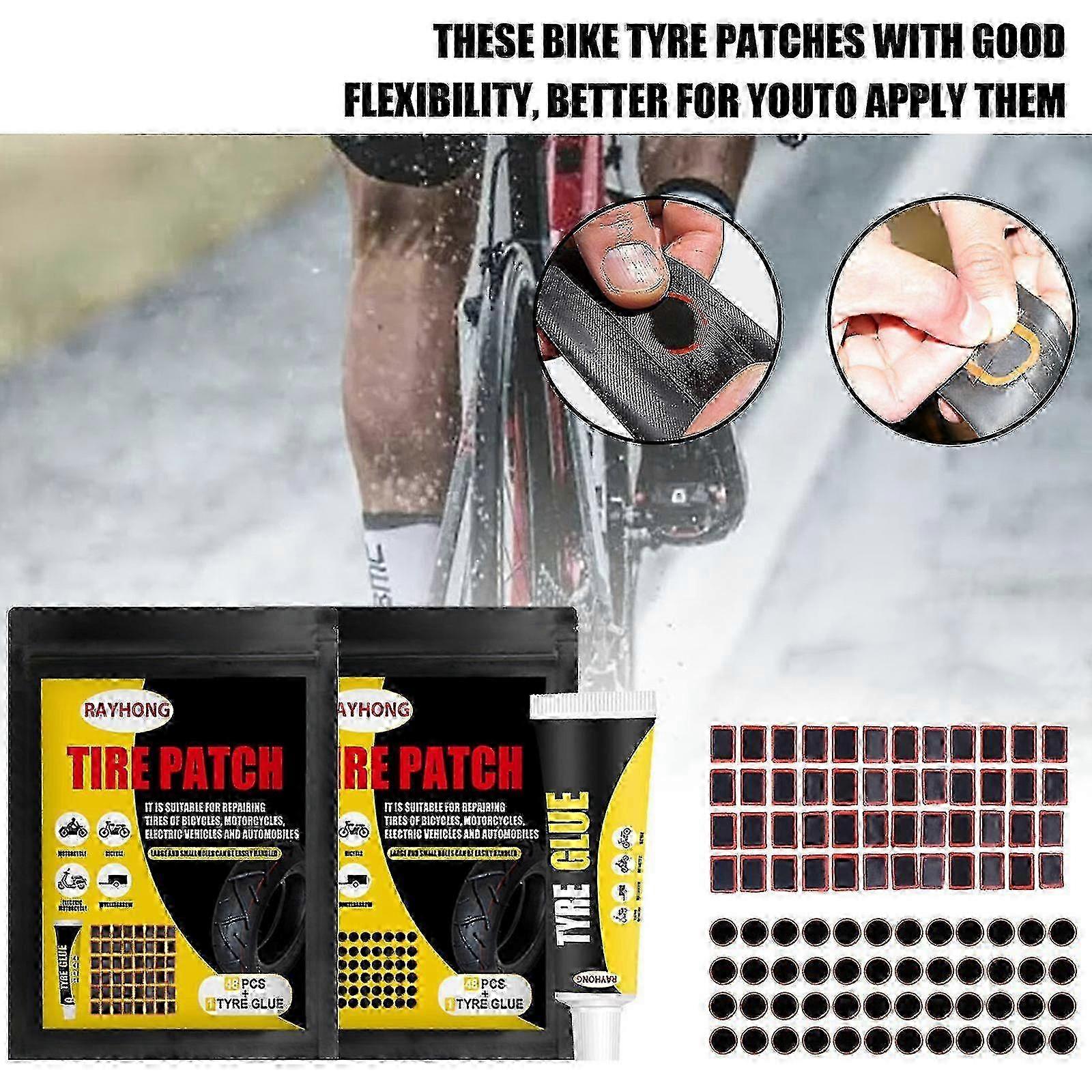 x [Rich quantity]: 96pcs can be used for your long-term use.48 square patch, 48 circular patch. x [Easy to Carry]: The tire patch for bicycles is thin and light, which is suitable for you to carry with you during outdoor sports. x [ Materials]: rubber increases the service life of the product. x [Careful Match]: The combination of square and round shapes can be applied to different shapes of gaps. x [Good Airtightness]: The perfect fit of the bicycle patch and metal tin foil effectively protects the bicycle patch. Note: Due to the light and screen setting difference, the item's color may be slightly different from the pictures. Please allow slight dimension difference due to different manual measurement.