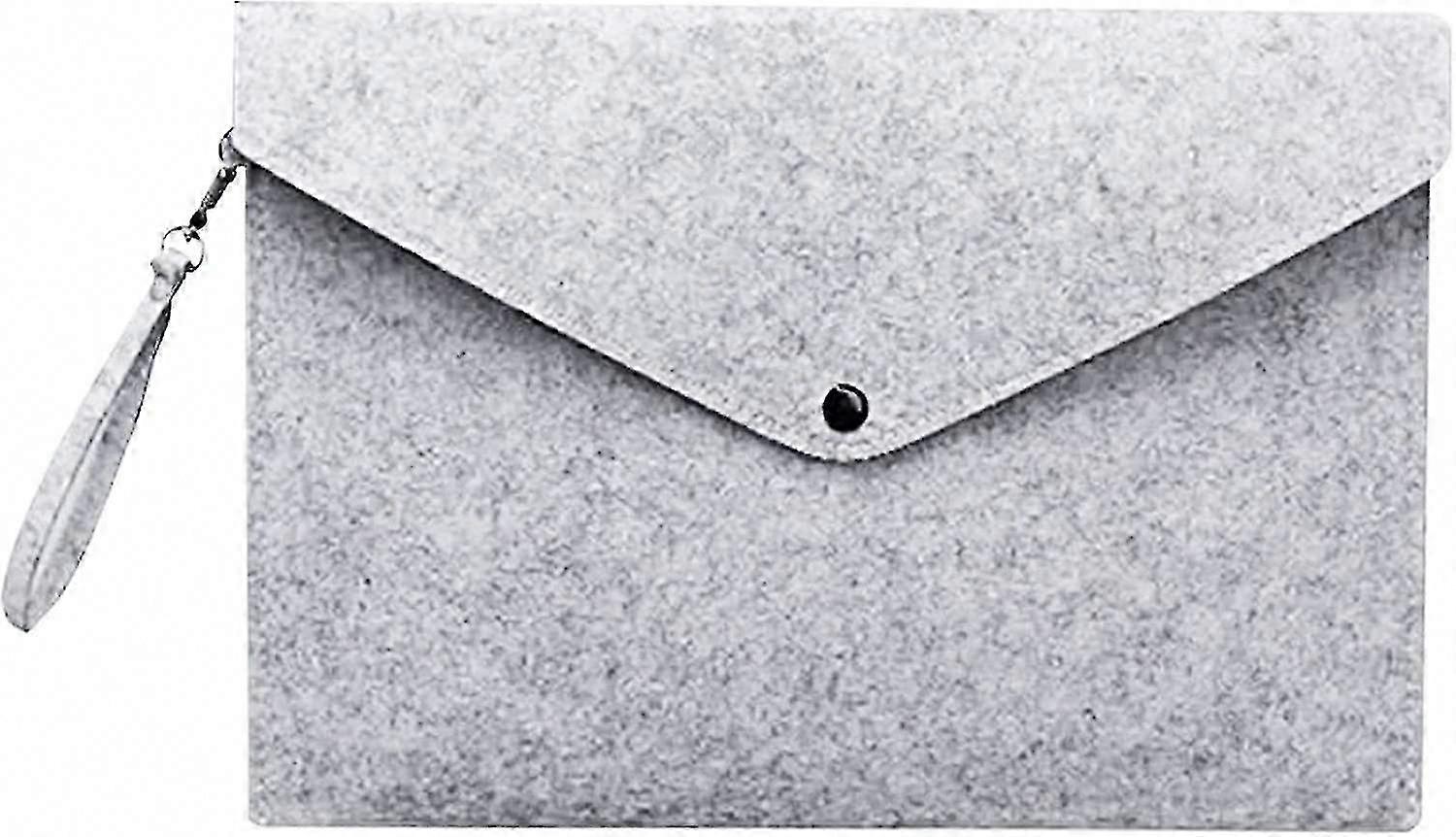 Material: The office bag is made of high quality felt, which is wear-resistant, tear-resistant and soft to the touch. Can be used for a long time. Buckle design: Metal snap buckle design, more convenient to turn on and off, firm to close, protect your documents from scattering. Easy to carry: Hand rope design, you can take it off anytime when you don't need to use it. The briefcase can be carried in a backpack or carried by hand. Fine workmanship: The felt material is thick, wear-resistant and durable, the edge stitching is neat and firm, and the thread is not easy to fall off. Suitable for: can be used for store A4 size paper, documents and some small items, protect your documents, bills, cards from loss and keep them organized.