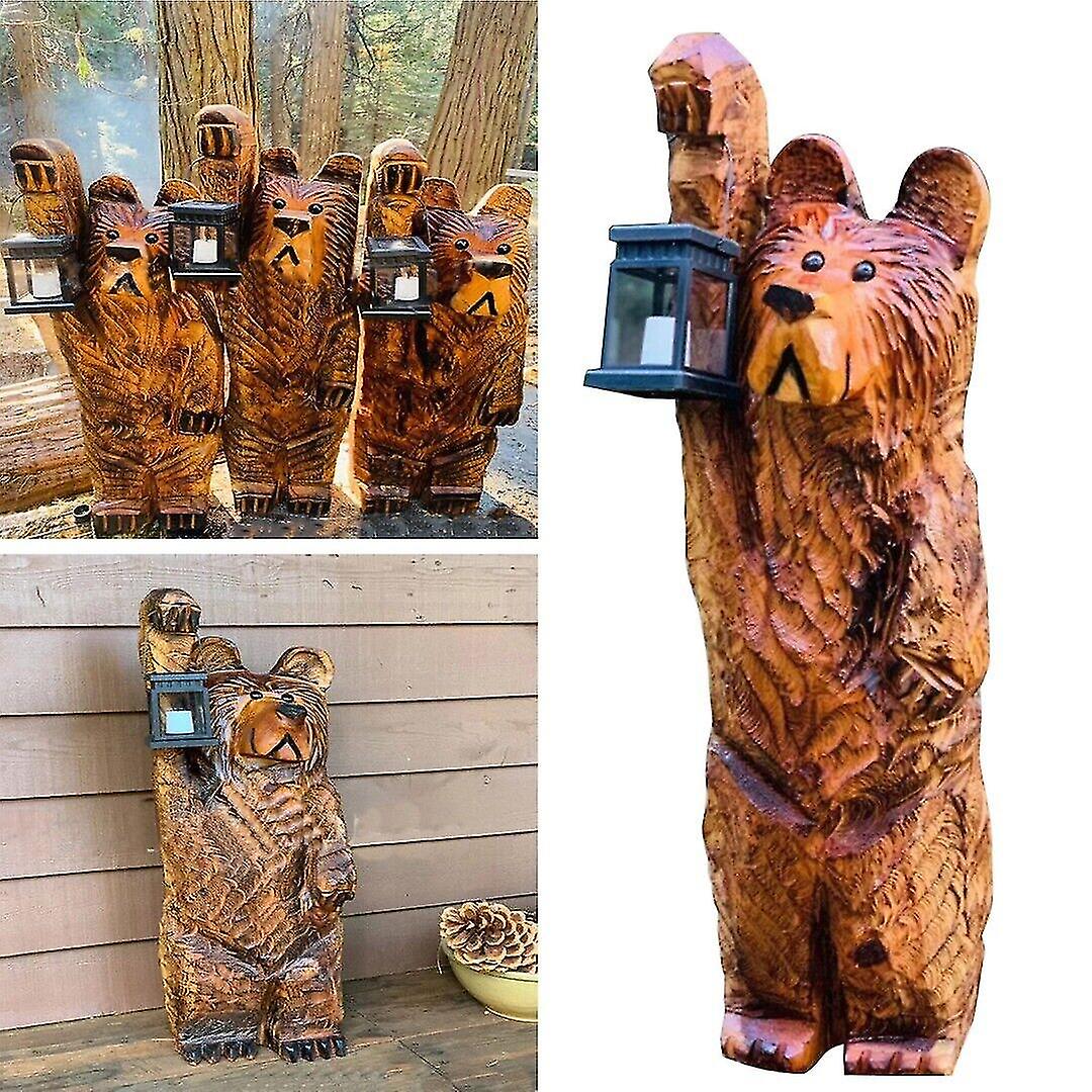 Cedar Bear With Led Lantern Resin Sculpture For Outdoor Patio Garden Lawn Decor