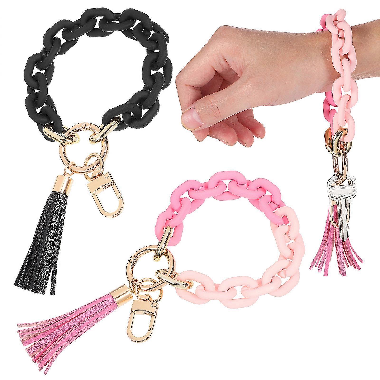 Acrylic Bangle Keyring Wristlets with Tassels Stylish Keychain Bracelets for Car and Home Use