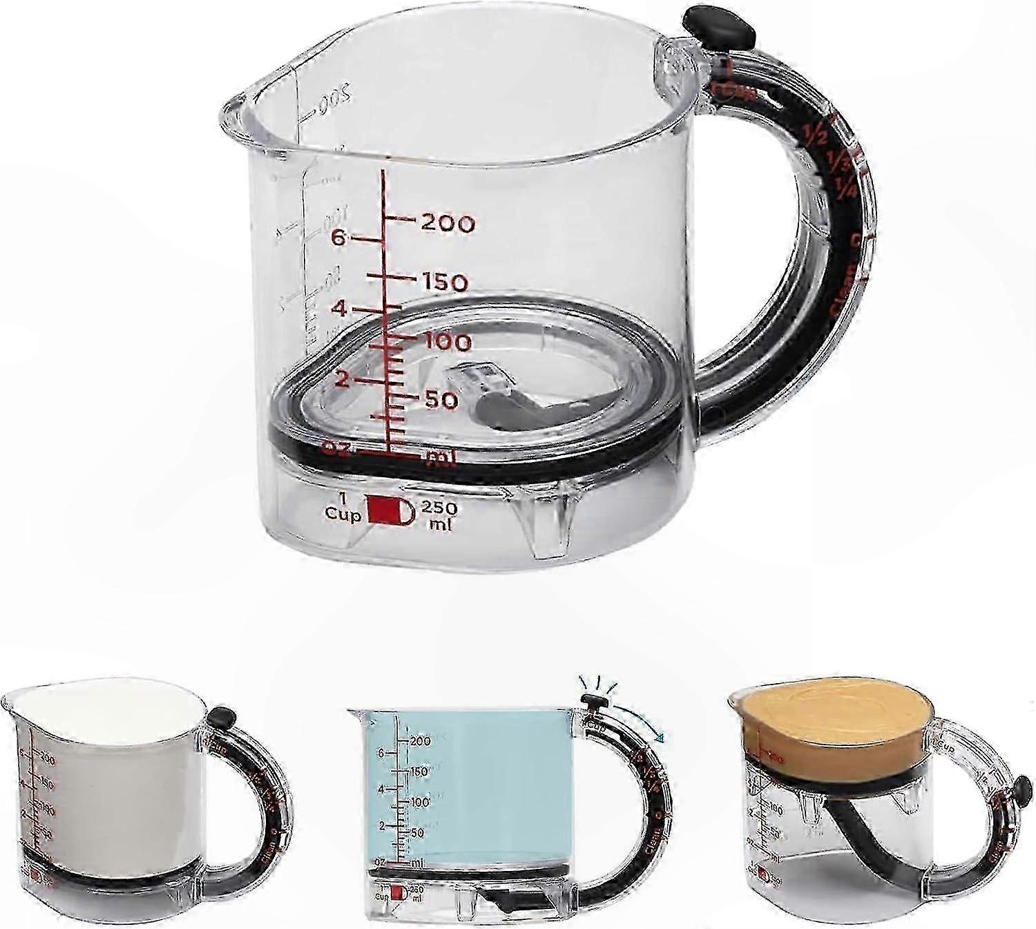 Adjustable Measuring Cup with Scraper Base, 4-in-1 Multi-Function Tool, Space-Saving and Easy to Clean Design for Kitchen Use