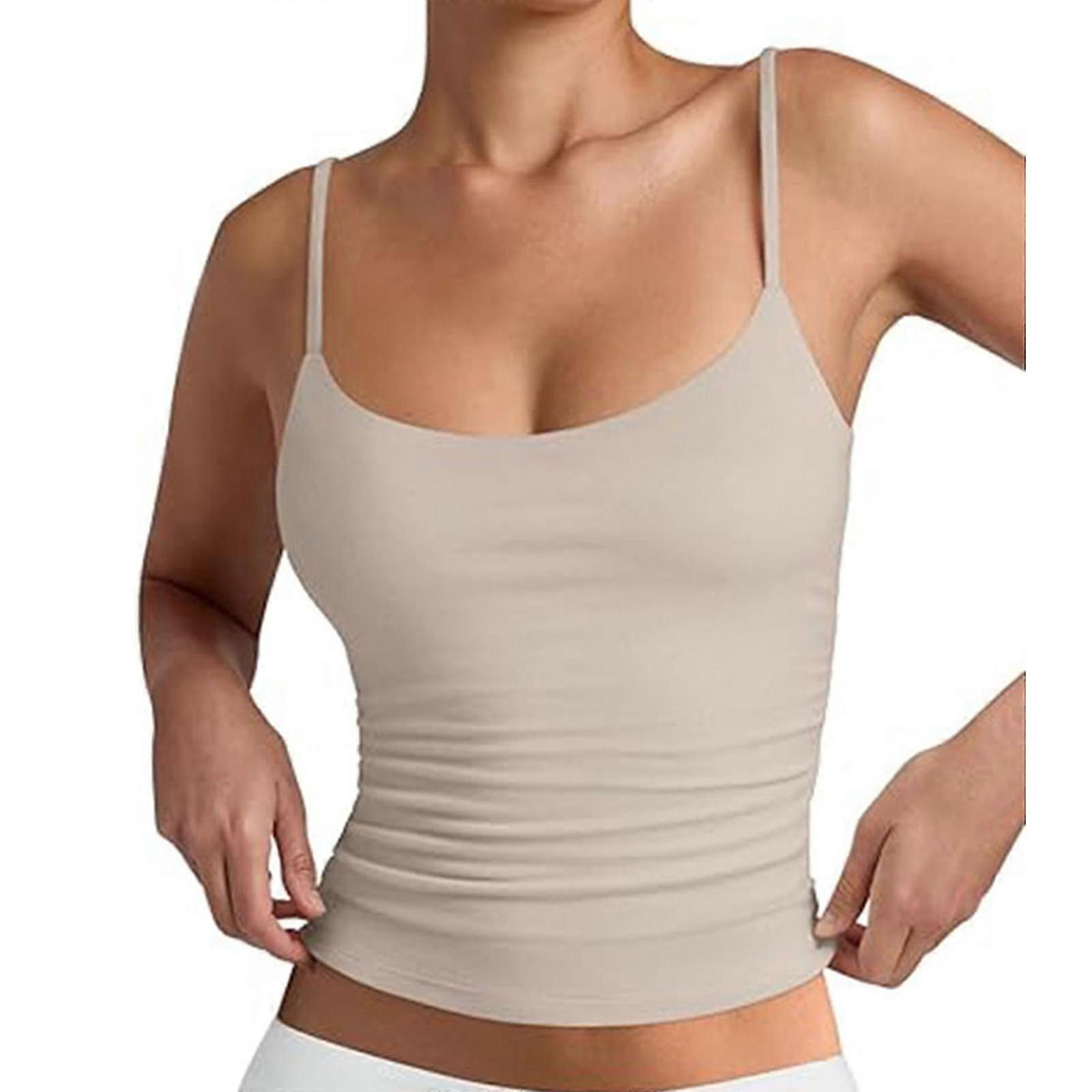 Adjustable Spaghetti Straps Tank Top Womens Summer Casual Wear Double Lined Camisole Sleeveless Backless Basic Shirt Beige XXL