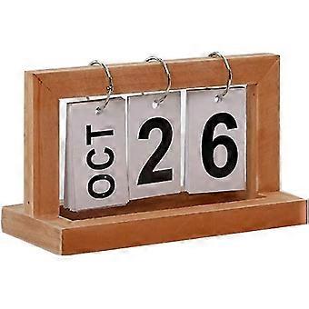 Wooden Flip Calendar Nordic Style Desktop Decor Perpetual Calendar Creative Page Flip Ring Calendar (khaki 1pc)