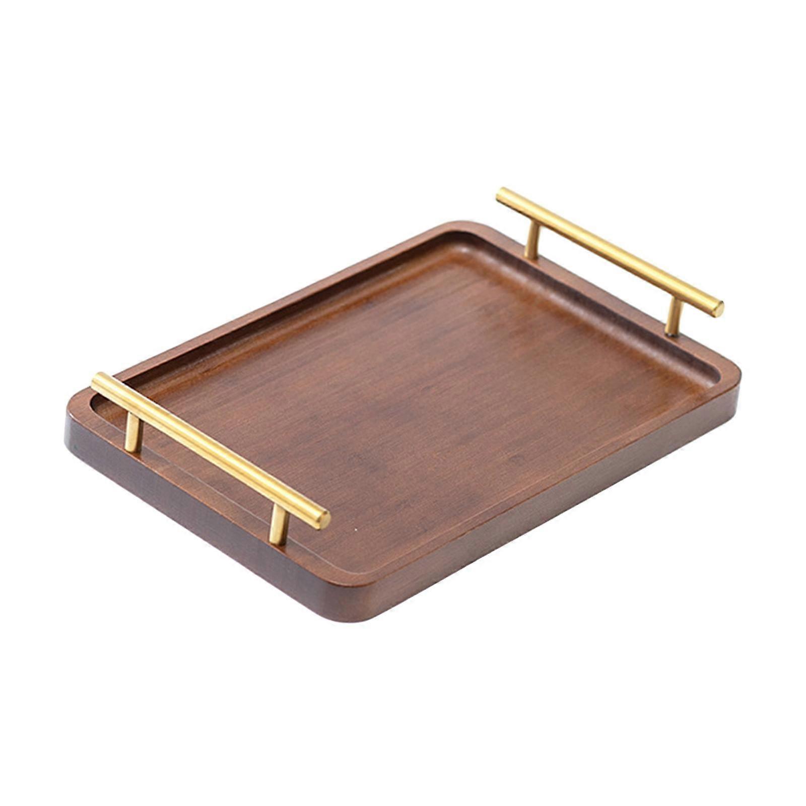 Wooden Serving Tray Coffee Table Tray with Metal Handles Elegant Wood Plate