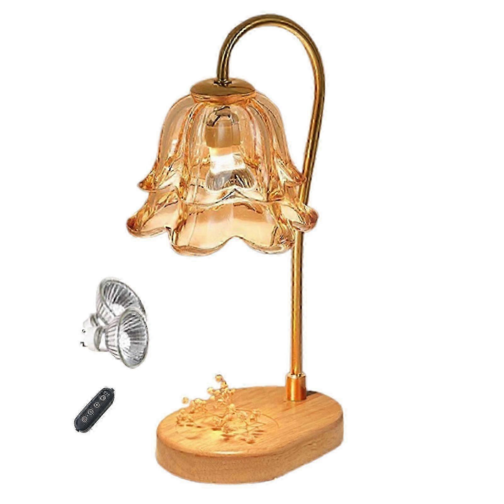 Candle Warmer Lamp with Wooden Base Timer Function Adjustable Brightness Scented Wax Melter Decorative Table Lamp