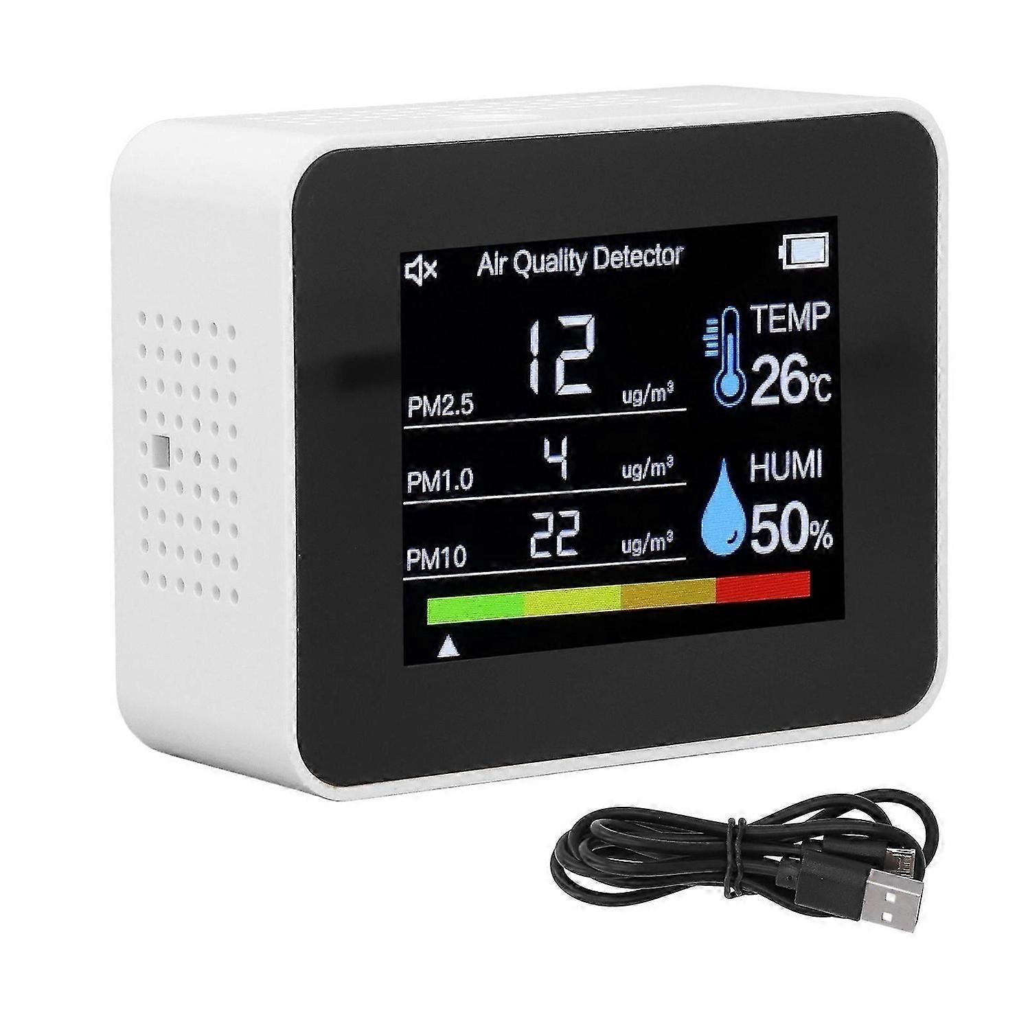 Air Quality Monitor CO2 HCHO TVOC PM2.5 PM1.0 Tester Temperature Humidity Detector with Gravity Sensor White