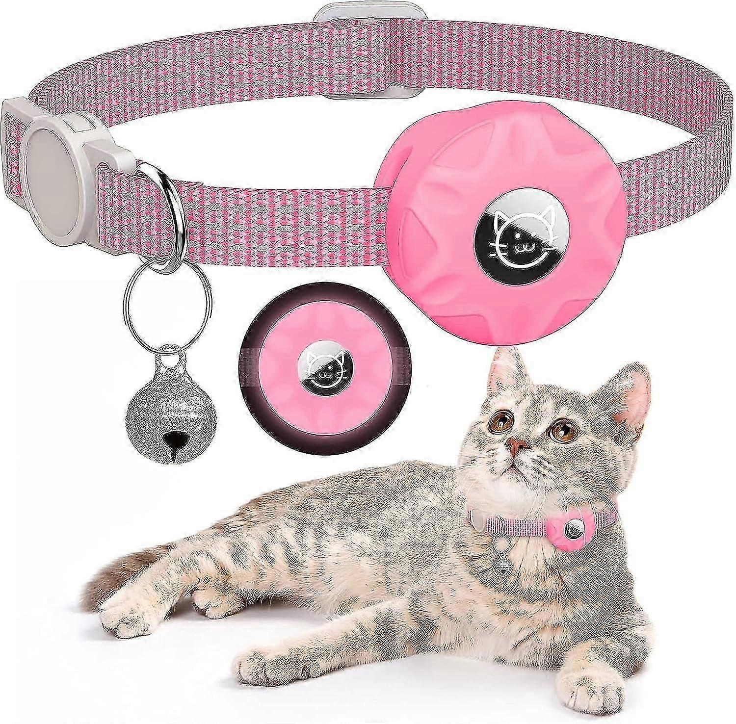 AirTag Cat Collar, Built-in Reflective Collar with AirTag Holder, GPS for Kittens and Puppies - Cat Collar with Bell - PinkL