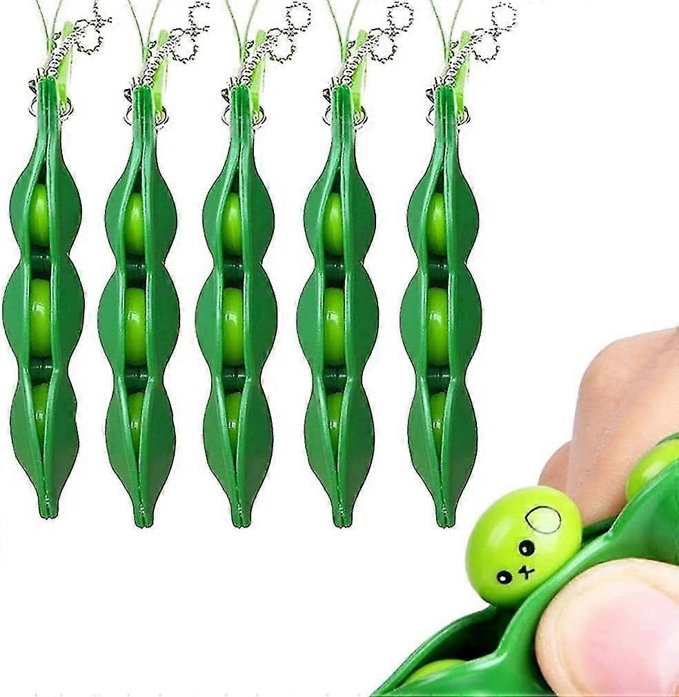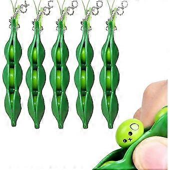 Keychain, Squeeze Bean Toy Keychain, Unzip And Relax Toy Squeeze Bean Key Holder (5pcs, Green)