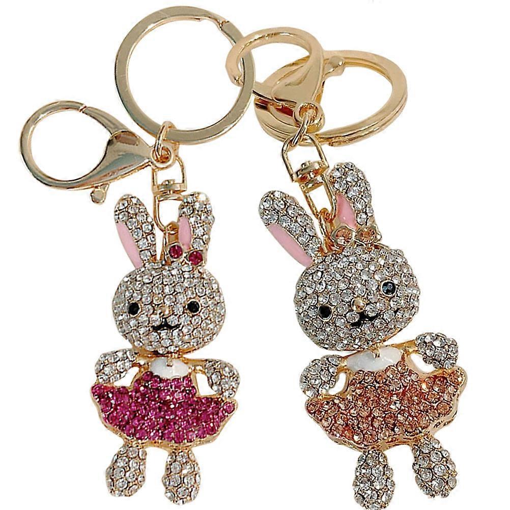 Animal Key Chain for Decoration 4Pcs Sparkling Rabbit Crystal Keyrings