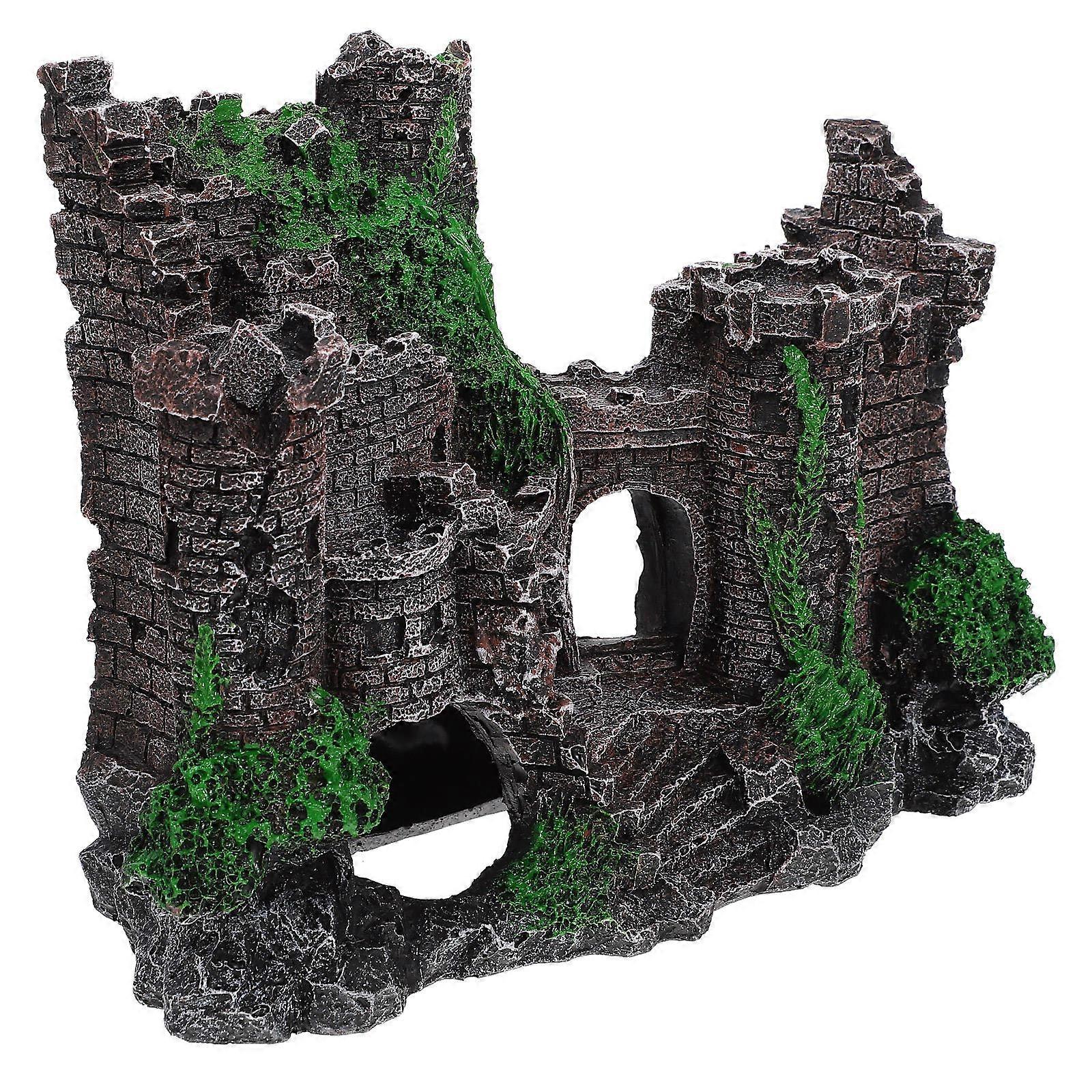 Aquarium Landscape Ornament Castle Shape Non-Toxic Material Fish Tank Decorative Item Assorted Color 18X15X8.5CM 1Pack