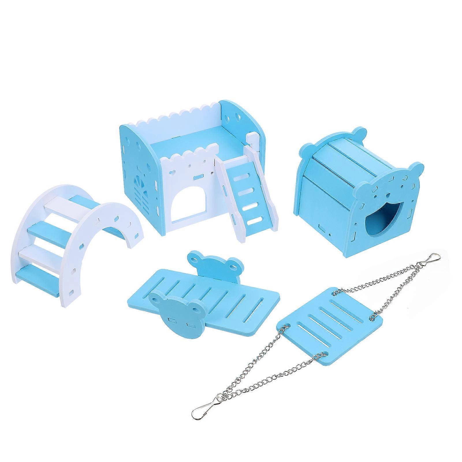 Arc Climbing Ladder And Sleeping House For Small Animals Like Hamsters And Gerbils In Blue For Stress Relief And Exercise 2 Sets