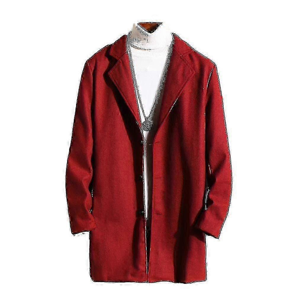 Plus Size Men Classic Woolen Overcoat Warm Winter Single Breasted Long Trench Coat Casual Slim Fit O
