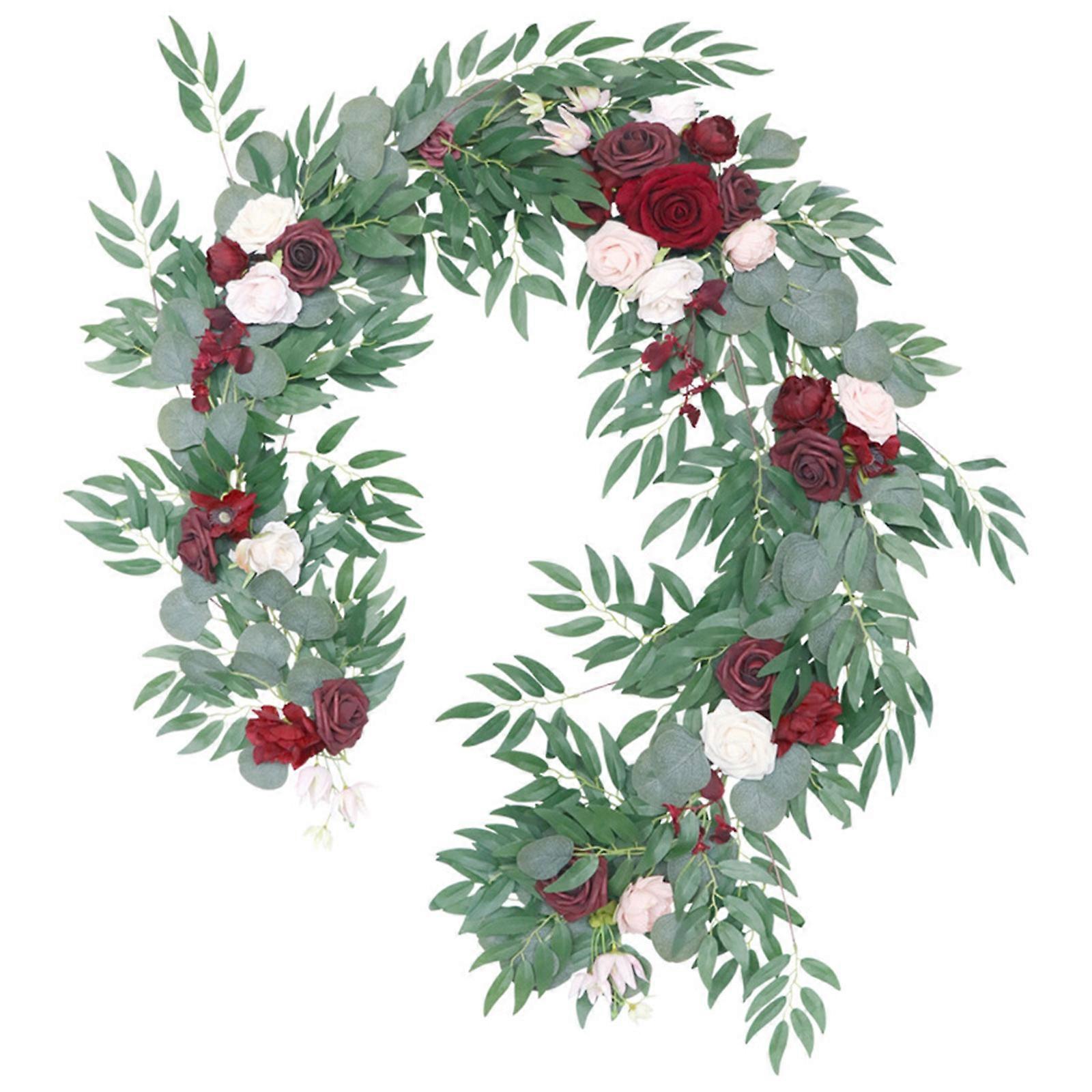Artificial Flower Wreath Wine Red Champagne Rattan Garland Ornament Multicolor