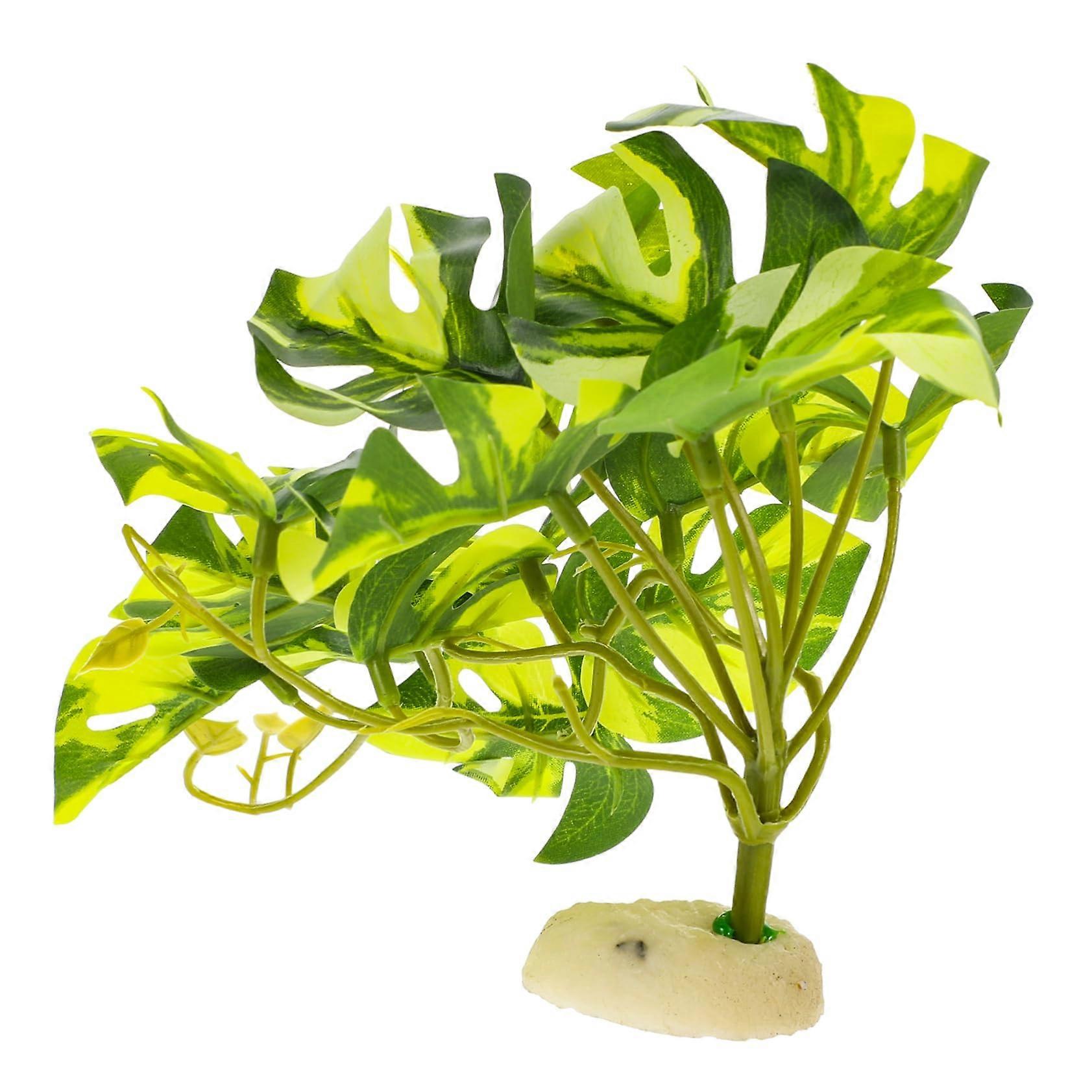 Artificial Reptile Plant with Base for Terrarium and Aquarium, Lifelike Green Decoration, Hiding Spots for Reptiles, Easy Installation