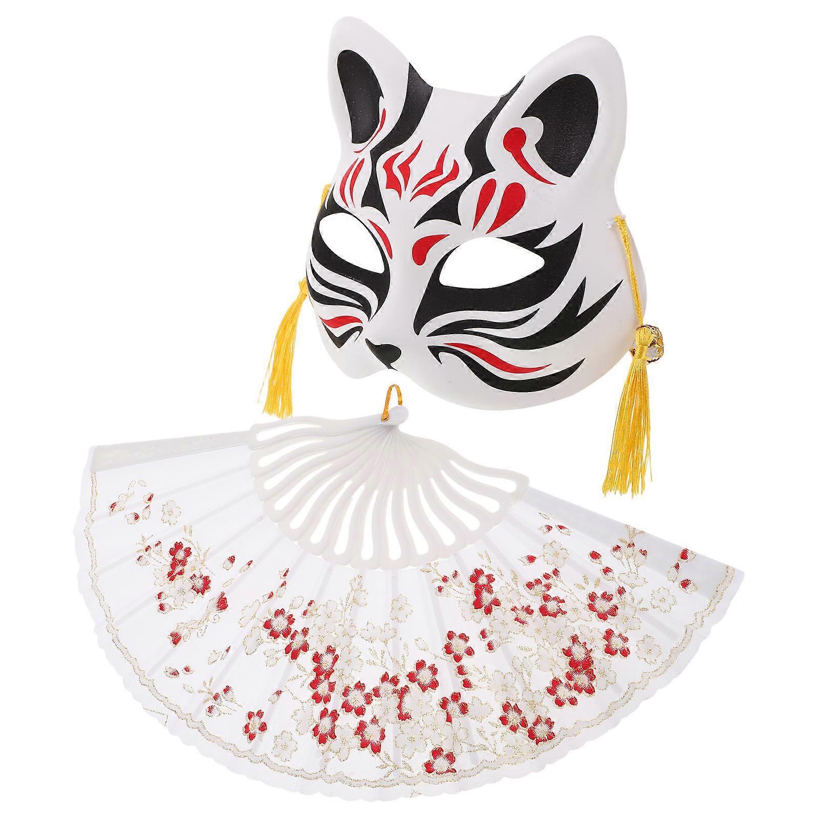 Assorted Mask With Hand Fan Halloween Carnival Accessory 1Set