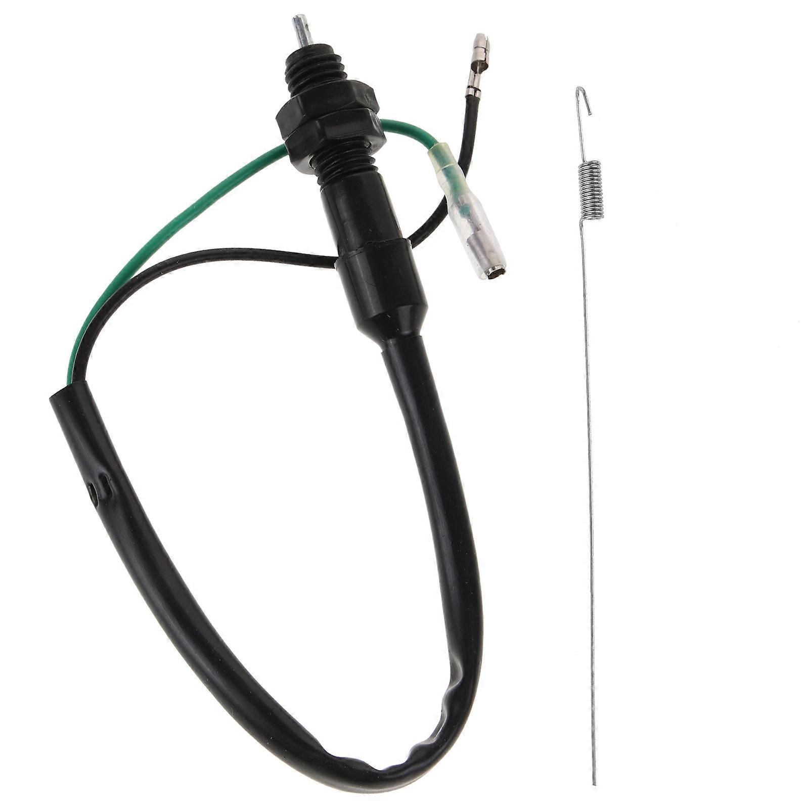 The 2 wire rear brake switch with spring is designed specifically for atv and four-wheel motorcycle. Made from rubber, metal materials, hard to break and not easy to damage. This accessory is simple to install and greatly enhances driving safety. Features -Color:Black -Material:Rubber, metal -Size:36.00X2.00X2.00cm/14.15X0.79X0.79in -Enhances safety: Improves the overall safety of atv by implementing advanced safety features. -Easy installation process: The installation of the brake light switch is simple and portable. -Reliable and responsive braking: Ensures that the braking system of the atv is dependable. -Crafted using rubber, metal materials, with durability and longevity of the brake light switch. -Specifically designed: Brake light switch is suitable for atv, ensuring optimal performance and compatibility. Package list: 1 x Brake Light Switch 1 x Spring