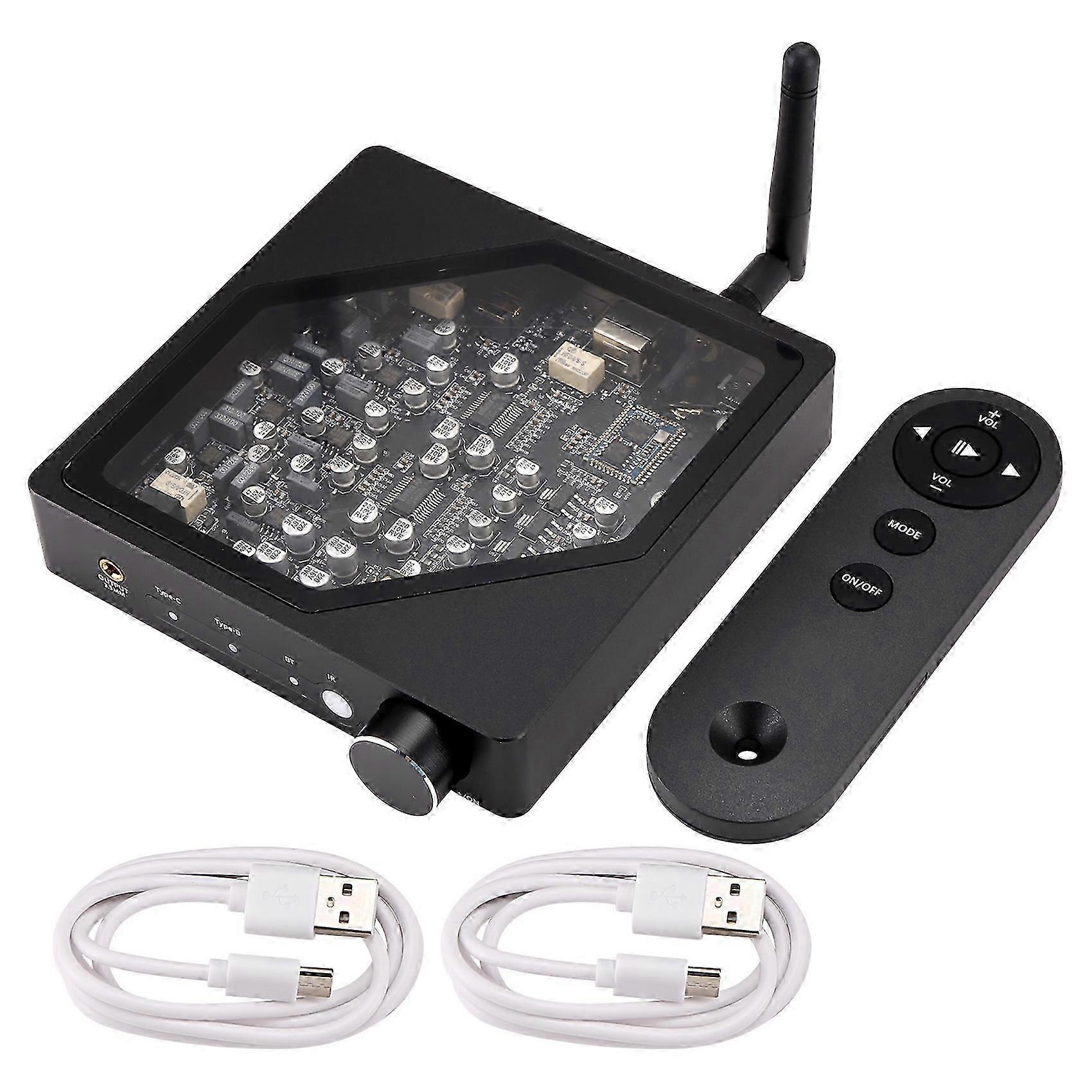 Super powerful function supports 3-way digital signal input:BT wireless: computer/mobile phone inputs audio signal through Bluetooth pairing,Type-B interface: wired connection to computer,Type-C interface: wired connection to mobile phone/tablet Super strong performance:Using dual PCM1794 decoder chips, 5532 seven op amp dual power supply circuit architecture, completely separate left and right channels, support 4.4 balanced output, no popping sound when turning on and off, clear and full sound quality, large dynamic range, recommended for use in high-end audio systems W610B uses Qualcomm OCC5215 Bluetooth module, supports LDAC mode(mobile phone This protocol must be supported. Open the options of the mobile phone and select it to use it) Super high appearance:Adopting visible transparent window, integral CNC processing and forming patented appearance, fashionable and stable, you can't put it down.System volume adjustment mobile phone/computer USB wired/Bluetooth connection adopts system tuning scheme to reduce interference and distortion and improve fidelity Power supply: 5V (Type-C interface) Dynamic range: 120dB@(1KHz A-) Signal-to-noise ratio: 120dB (@1KHz A-) Harmonic distortion: 0.0007% Channel crosstalk: -110dB (@1KHz A-) Frequency response: 20Hz-20KHz Output level: 1.8Vrms Output interface: Lotus port, 3.5MM port, balanced 4.4 port Input interface: Type-C port, Type-B port Bluetooth protocol: LDAC Apt-XAptX-HD AAC Bit depth: 16bit 24bit Sampling rate: 44.1K 48K 96K Colour:Black Material:Metal Package Contents: 1x audio decoder set Only the above package content, other products are not included. Note: Light reflection and different displays may cause the color of the item in the picture a little different from the real thing. The measurement allowed error is +/- 1-3cm.