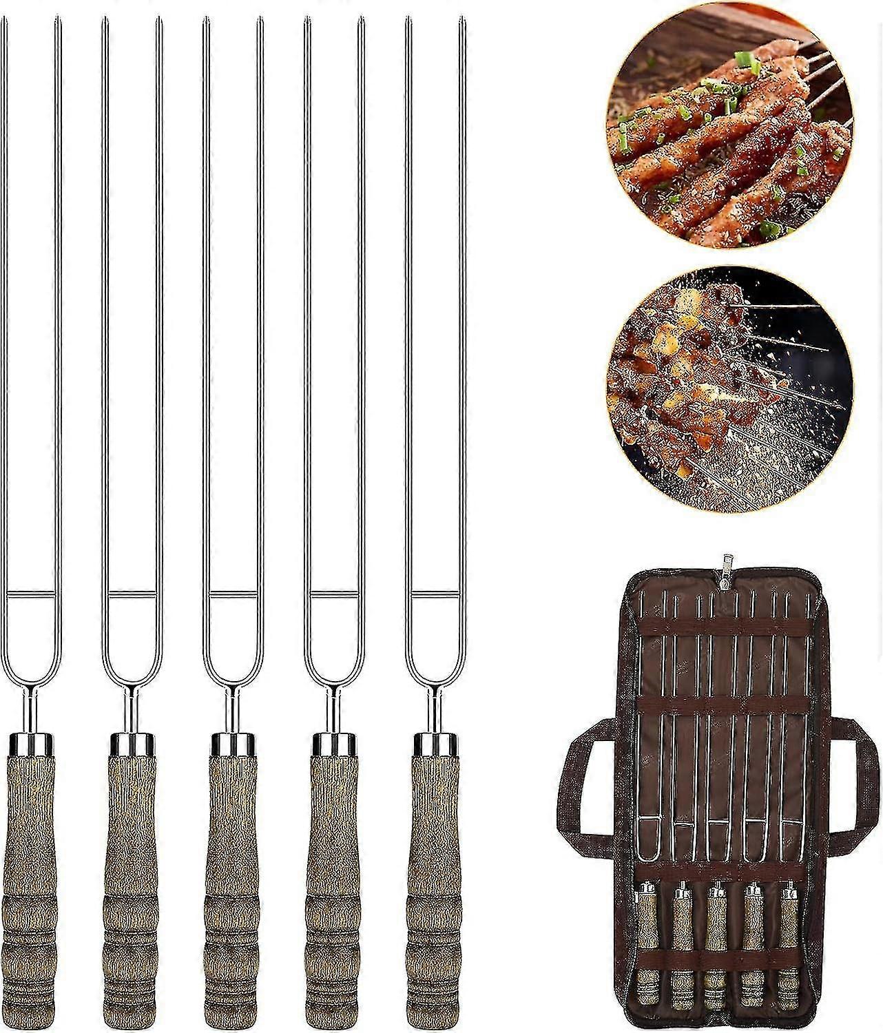 Auniq Kebab Skewers, Set Of 5 Stainless Steel Bbq Skewers U Shape Metal Skewers For Bbq With Wooden Handle Reusable Barbecue Skewers With Storage Bag