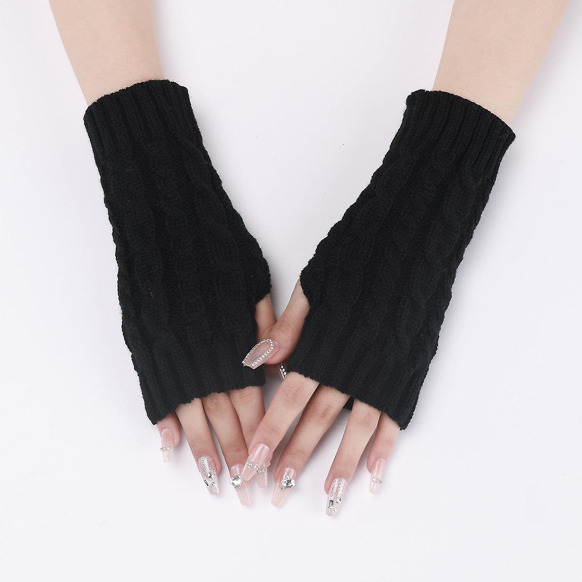 Autumn And Winter 8 Words Hemp Pattern Short Open Finger Knitting Wool Gloves Men's And Women's Knitted Warm Half Finger Arm Sleeve