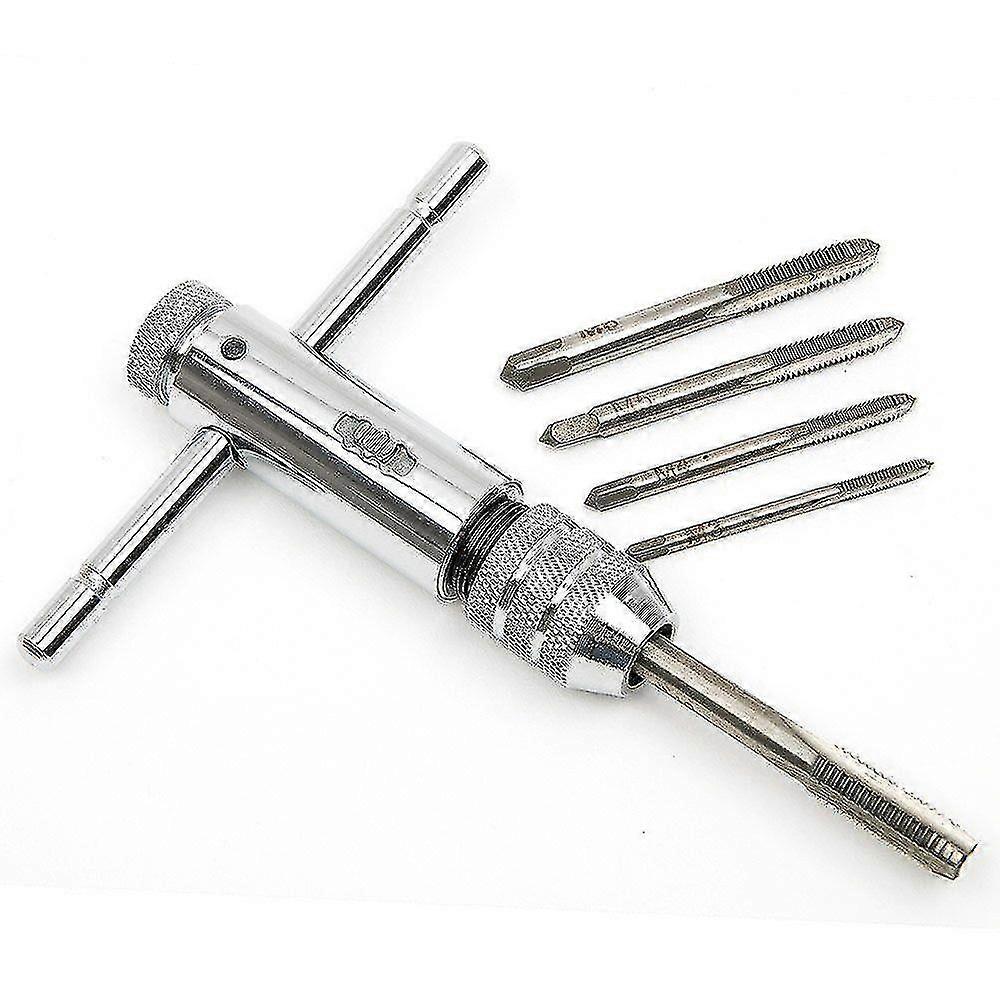 Adjustable Silver T-handle Ratchet Tap Holder Wrench With 5pcs M3-m8 3mm-8mm Machine Screw Thread Metric Plug T-shaped Tap