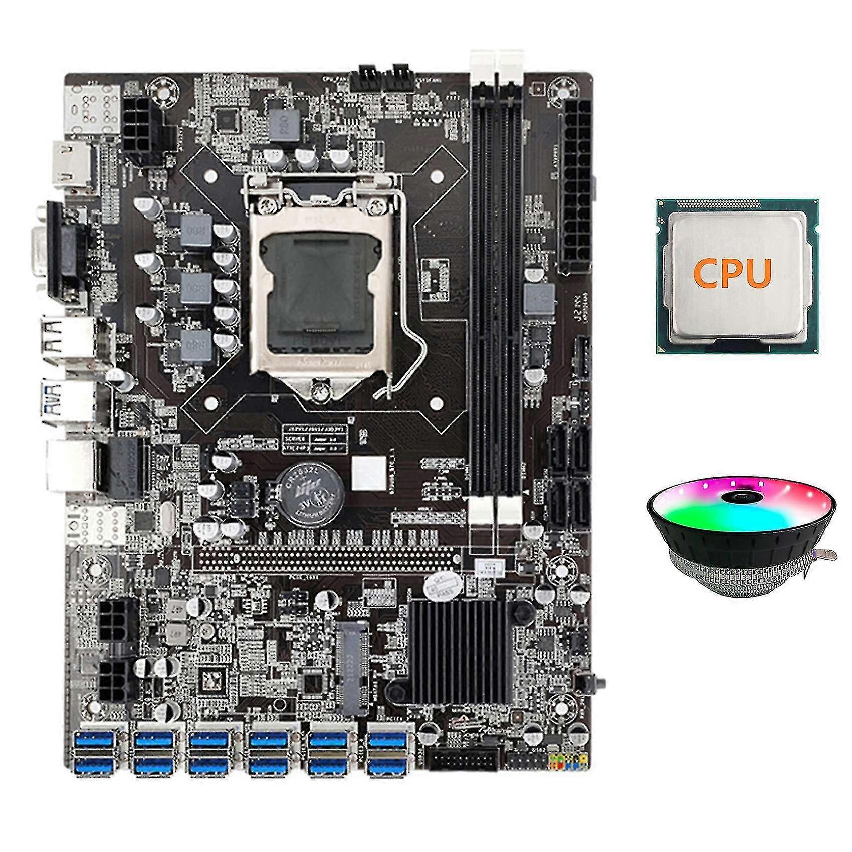 B75 Eth Mining Motherboard 12 Pcie To Usb Adapter+cpu+rgb Cooling Fan Lga1155 Ddr3 Msata B75 Usb Bt