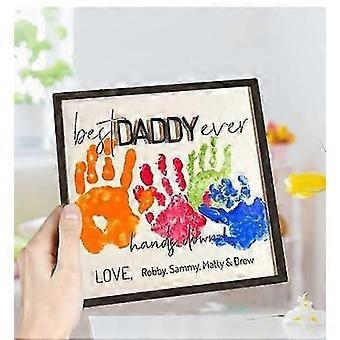 Father's Day DIY Handprint Wooden Plaque with Kid's Name,Handprint Plaque for Daddy/Dad/Grandpa/Papa(No Pigment)